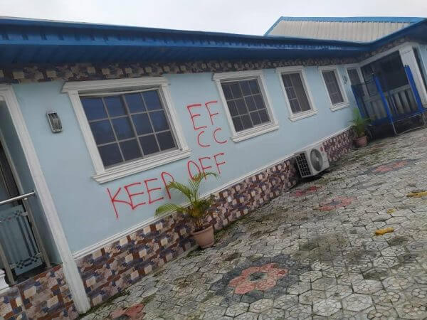 His house in Ughelli has been sealed off by EFCC and two cars with personalized plate numbers have also been confiscated